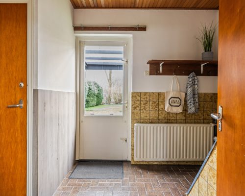 Tevens is hier de trapopgang naar de eerste verdieping en de deur naar buiten.