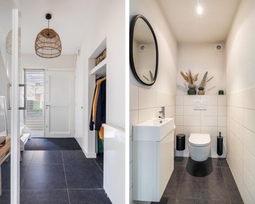 Via De Voordeur Betreed Je De Ruim Opgezette Hal. Hier Is De Trapopgang, De Meterkast, De Ruime Garderobe En De Toegang Tot De Woonkamer. De Taatsdeur Zorgt Voor Een Moderne En Luxe Uitstraling En Creëert Een Ruimtelijk Effect.