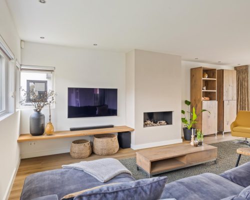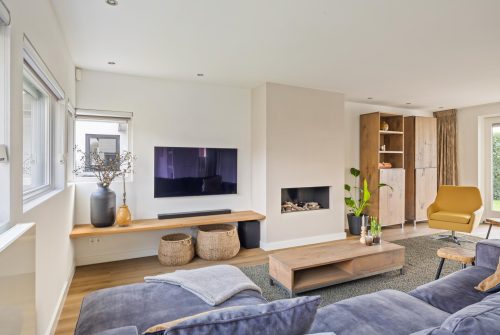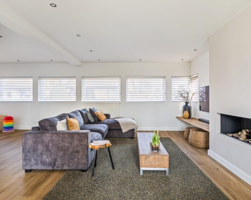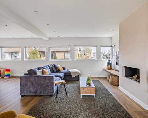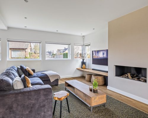 De Woonkamer Is Een Sfeervolle Ruimte Met Gashaard En Royale Zithoek. Fijne Lichtinval Dankzij De Raampartijen In De Voor- En Achtergevel. Dankzij De Bijzondere Architectuur Geniet Je Hier Van Veel Privacy.