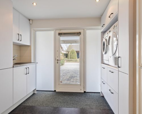 De Bijkeuken Is Een Nette En Praktisch Ingerichte Ruimte Waar Het Witgoed Op Hoogte Is Opgesteld. Verder Vind Je Hier Een Werkblad, Opbergkasten En Een Toilet Met Fonteintje. Bovendien Is Hier Ruimte Om Een Extra Vriezer Te Plaatsen.