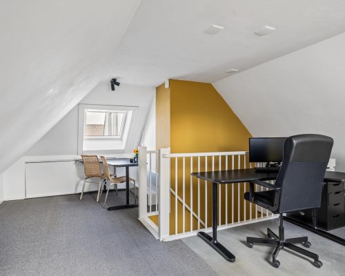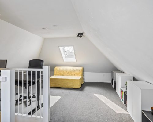 Verdieping 1 Bereik Je Via De Trapopgang, Die Zich Tussen De Keuken En De Tuinkamer Bevindt. Deze Leidt Naar Een Kamer Boven De Tuinkamer. Deze Ruimte Is Nu In Gebruik Als Kantoor Maar Bijvoorbeeld Ook Prima Te Gebruiken Als Extra Slaapkamer Of Als Speelkamer/chillruimte. Met Recentelijk Geplaatste Dakramen (2024) Aan De Noord- En Zuidkant Is