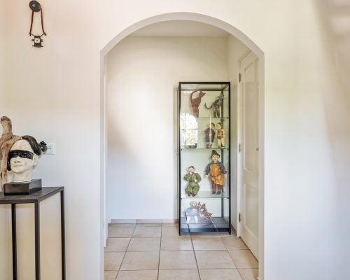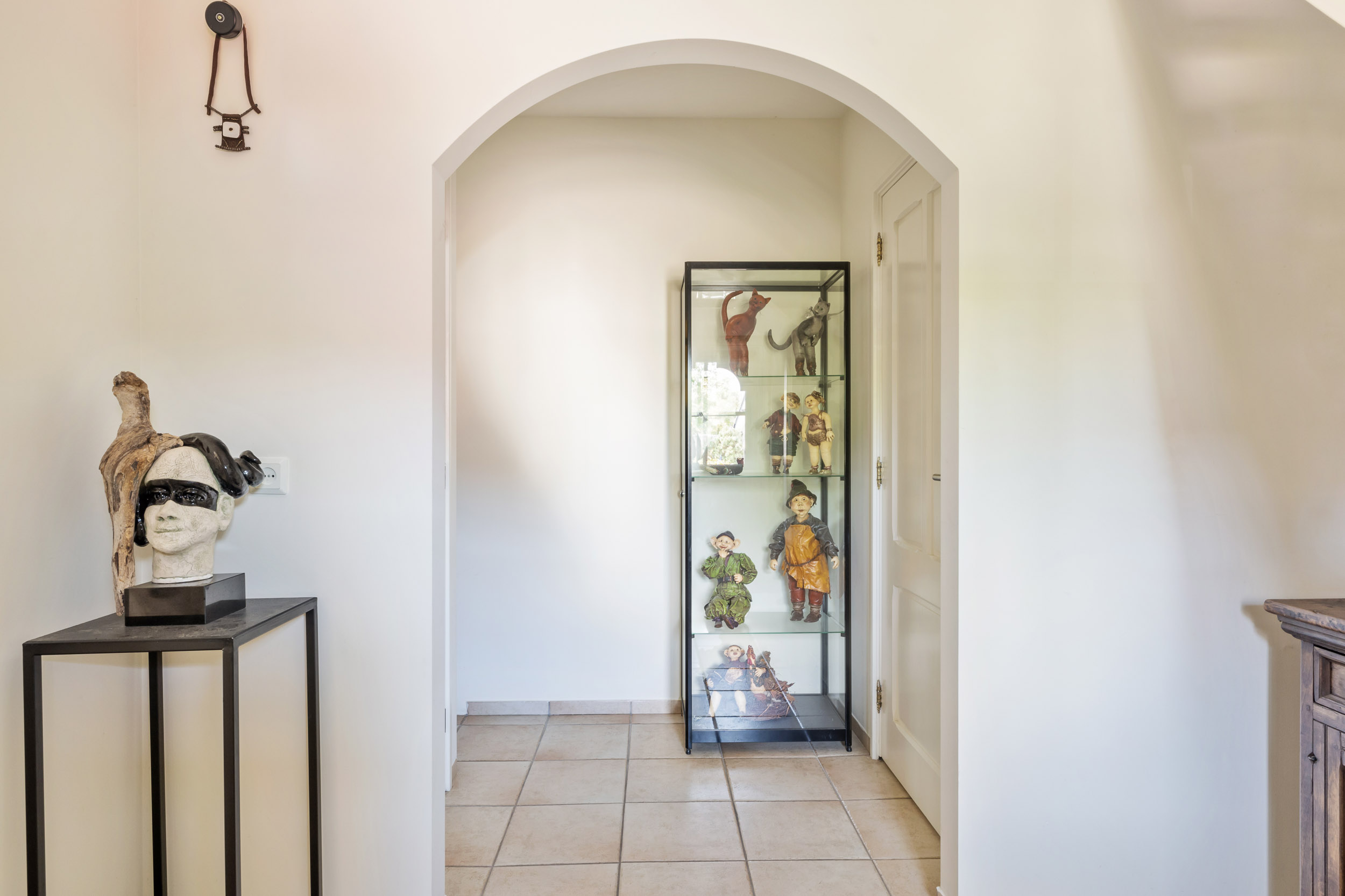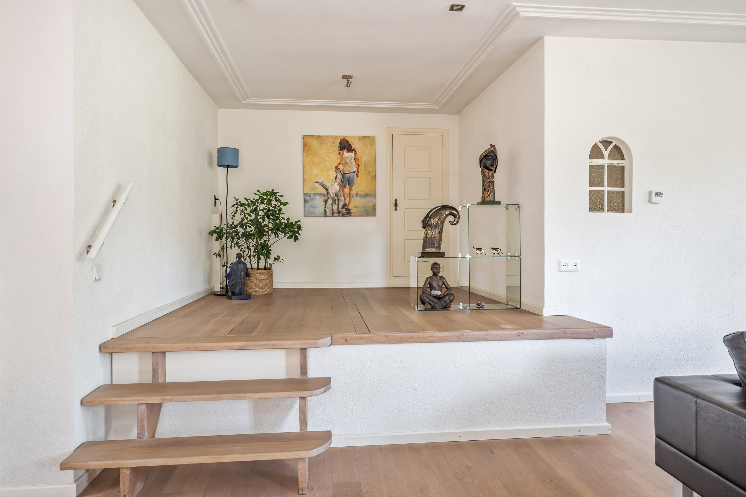 In de woonkamer en keuken ligt een eiken vloer, in de overige ruimtes ligt een natuurstenen vloer. De wanden in de woonkamer zijn voorzien van granol en de plafonds zijn afgewerkt met een sierlijst. De overige wanden zijn strak gestuukt. De keuken, eetkamer en tuinkamer zijn voorzien van vloerverwarming.