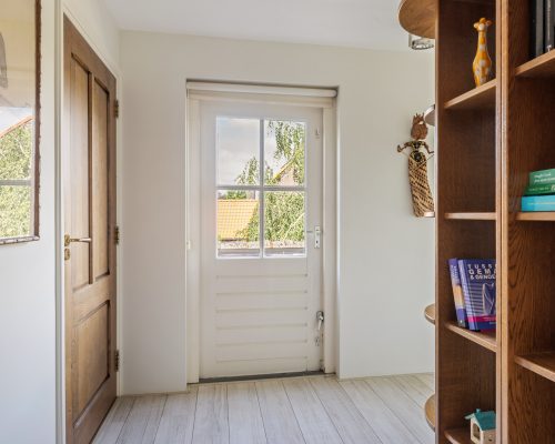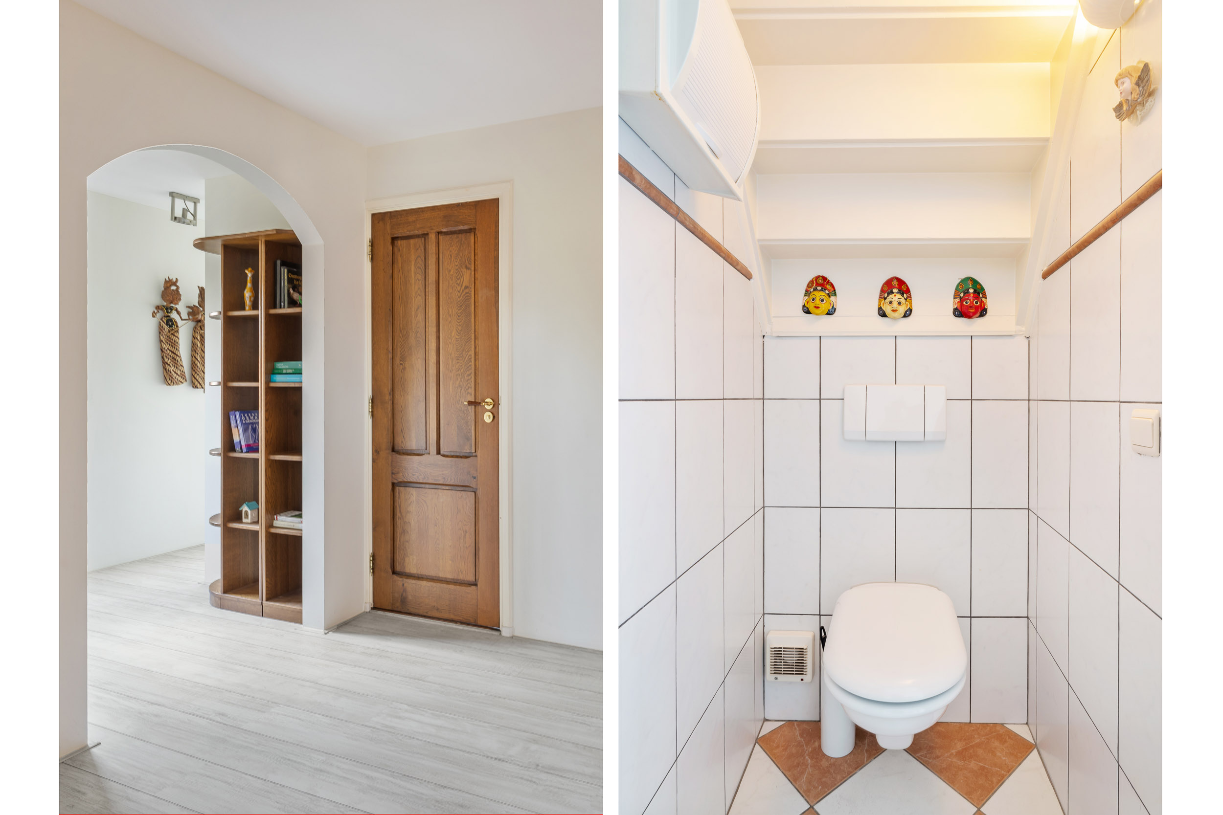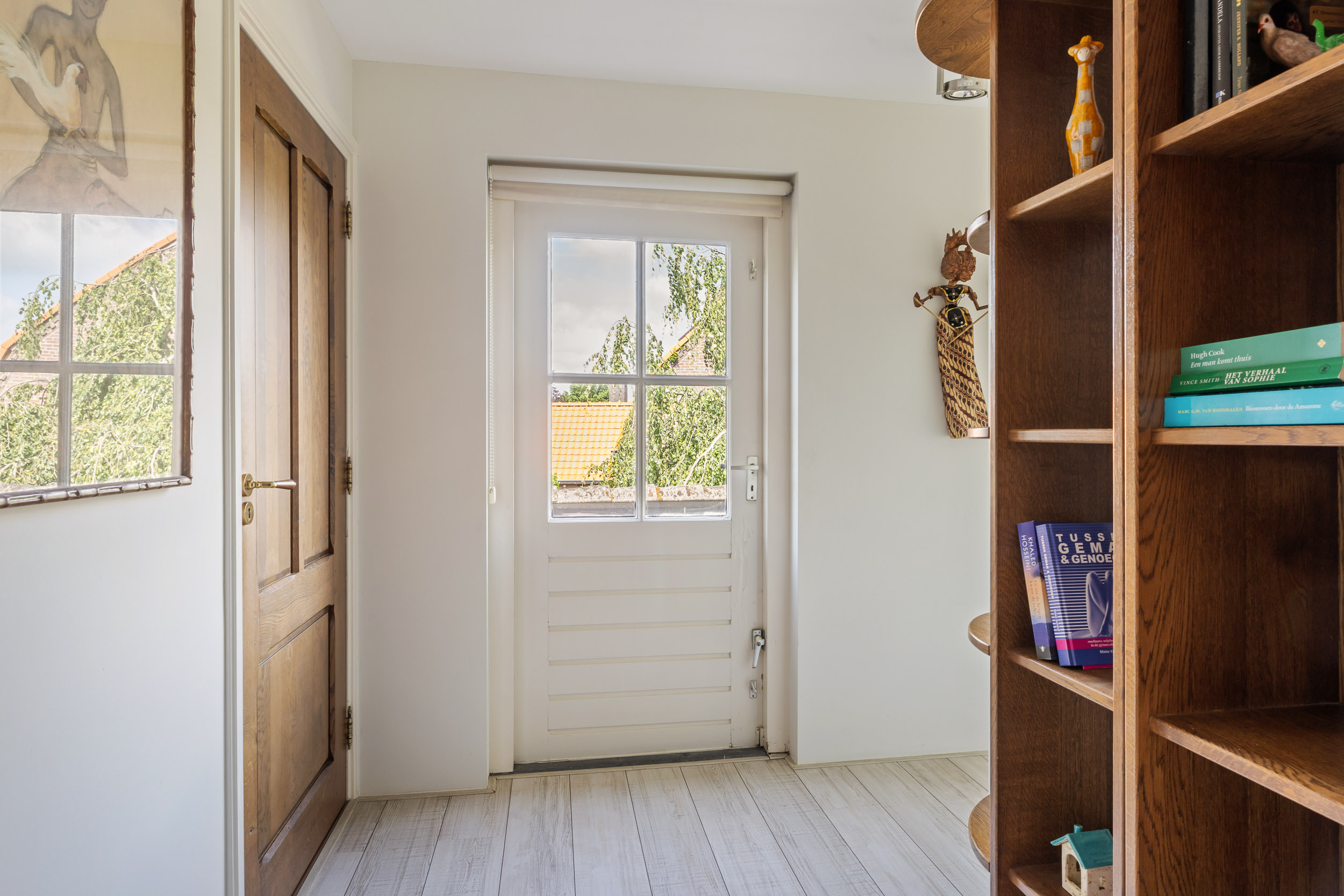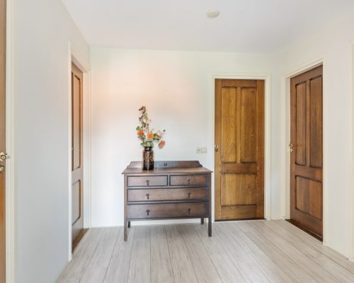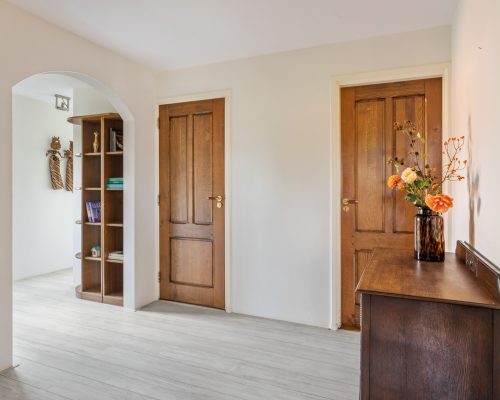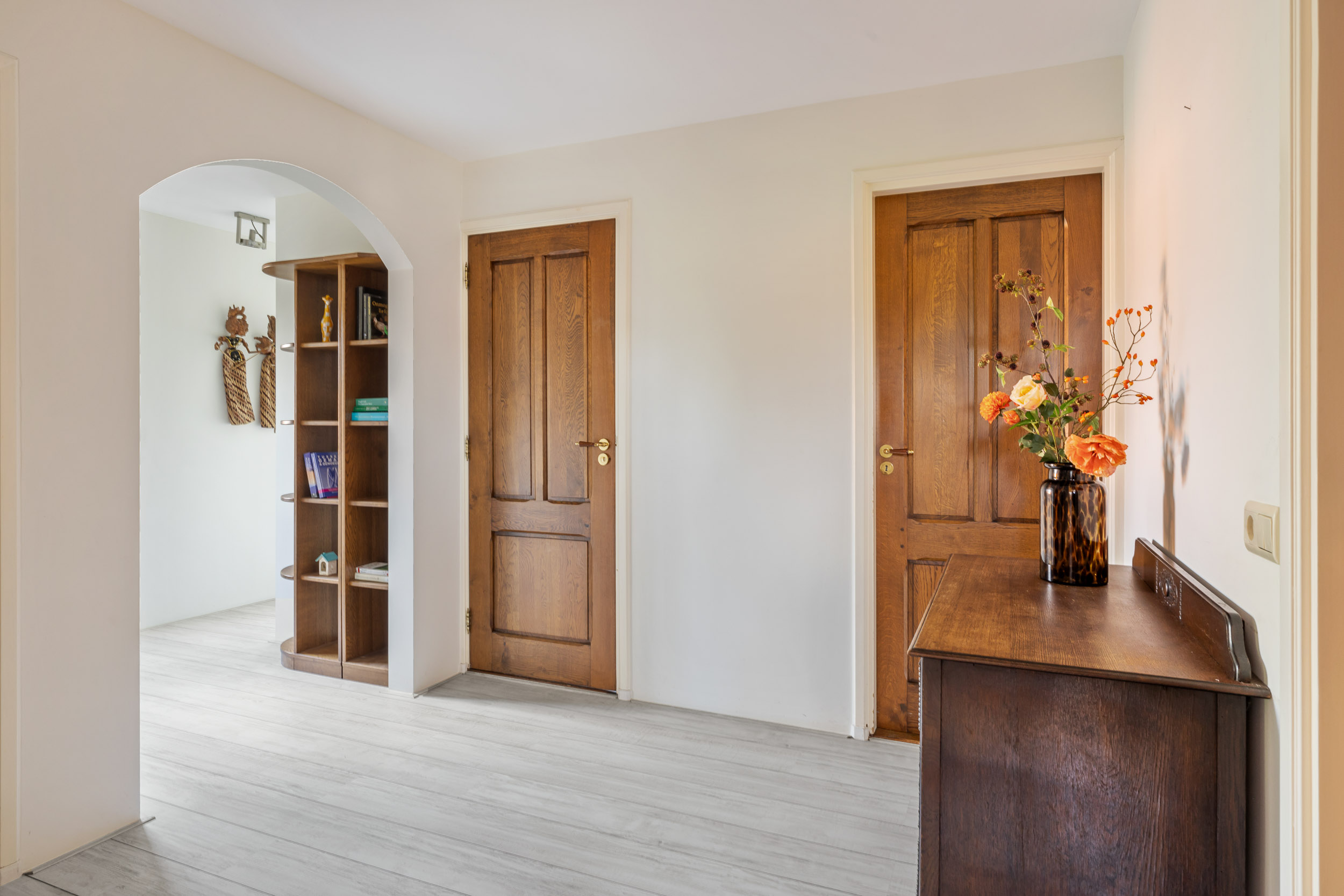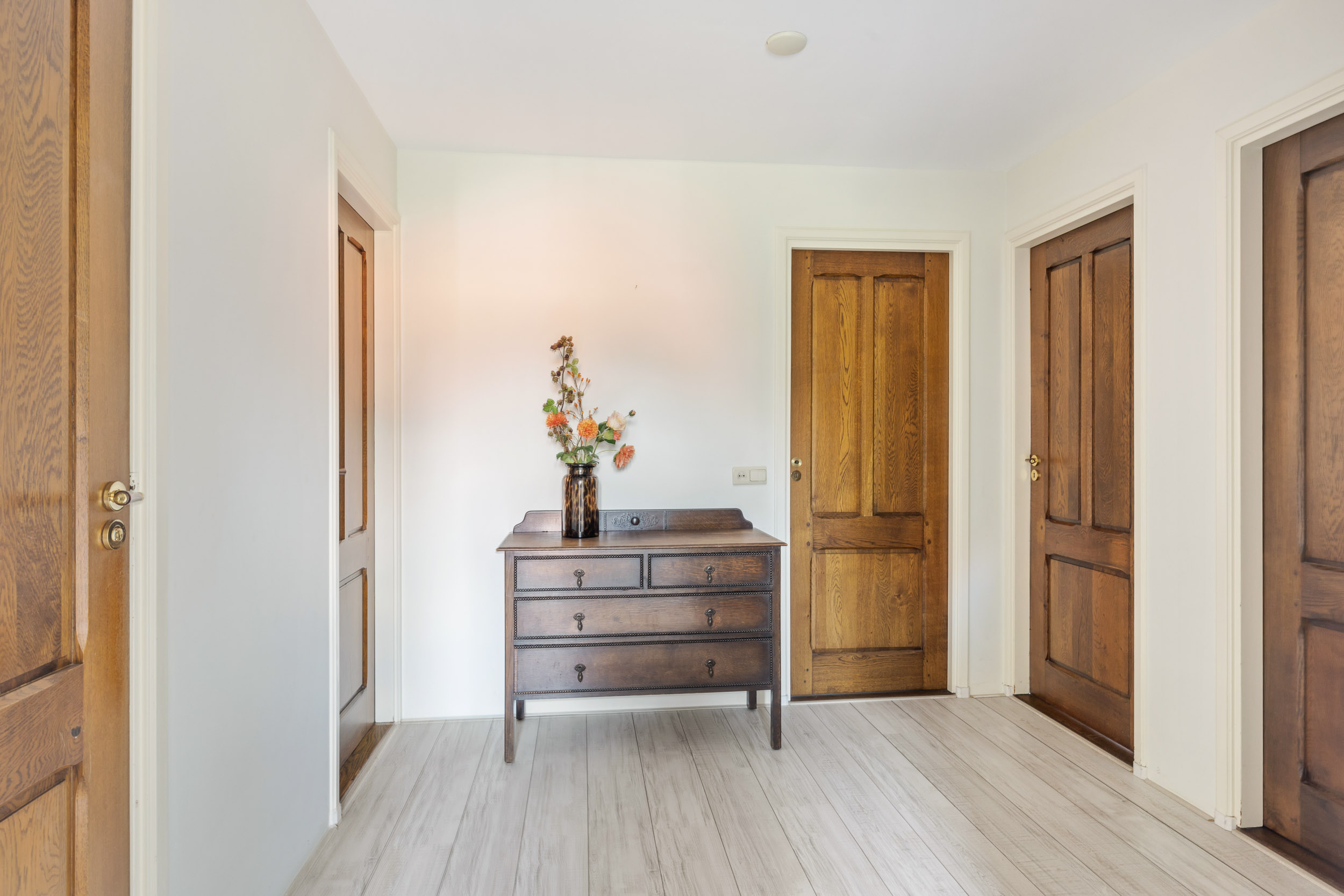 Op de overloop springen de houten paneeldeuren direct in het oog.