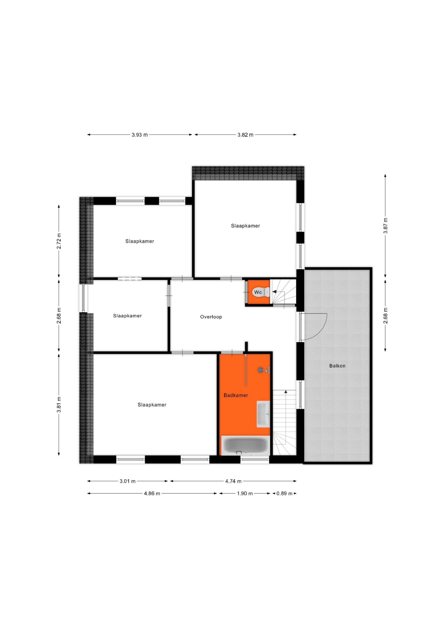Hier bevinden zich oorspronkelijk 4 slaapkamers, een separaat toilet en de badkamer. Twee slaapkamers zijn samengevoegd waardoor je nu over 3 royale slaapkamers beschikt. Indien gewenst kan deze eenvoudig weer worden gesplitst. In de ouderslaapkamer geniet je van airco. De slaapkamers op het zuiden beschikken over rolluiken en hebben beiden een wastafel.