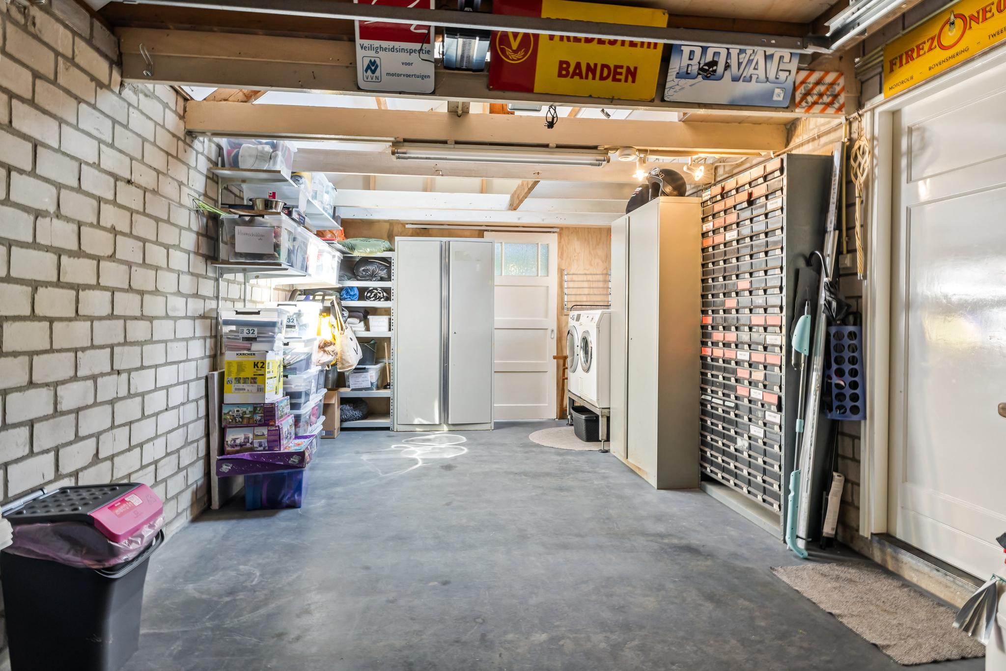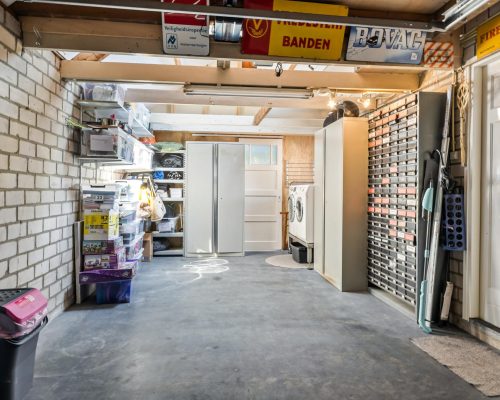 De berging/garage is de perfecte plek voor de klusser. Voorzien van een sectionaaldeur, die via de app kan worden bediend. Hier staat ook het witgoed opgesteld. Praktisch, want hierdoor hang je het wasgoed in no time buiten te drogen. Bovendien kun je ervoor kiezen om het witgoed in de doorgang naar de garage te plaatsen, de aansluitingen zijn hiervoor voorbereid.