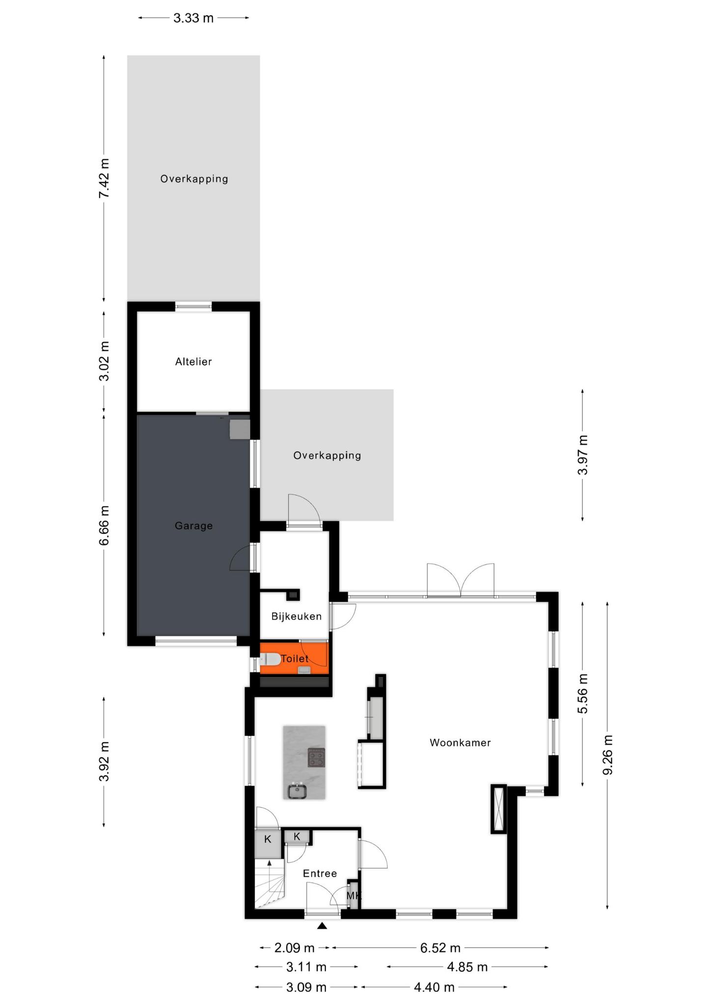 • Berging/garage en atelier met mogelijkheid om de ruimte bij de woning te betrekken voor bijvoorbeeld een