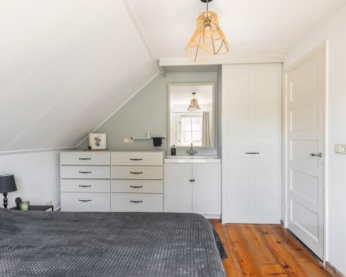 De eerste verdieping biedt ruimte aan drie slaapkamers, allen voorzien van een wastafelmeubel, sfeervolle houten vloer, strak schuurwerk en inbouwspots. Kers op de taart is de vierde kamer die als walk-in closet is ingericht.